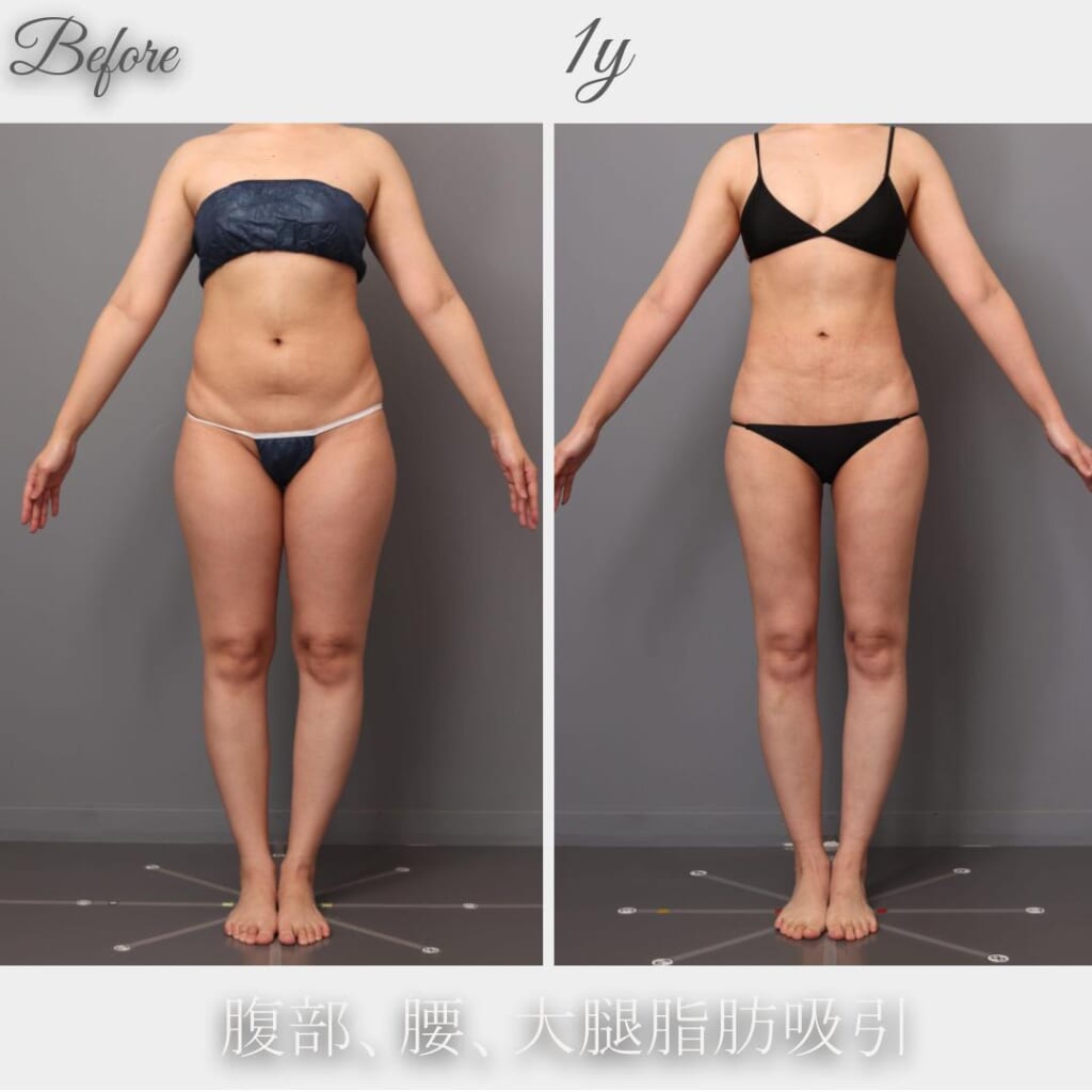 「腹部+腰」「大腿全周+膝」のベイザー脂肪吸引(別日程で手術)